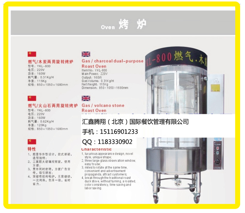 5.北京烤鴨一定要炭烤嗎?能否用電烤呢? 答:北京烤鴨既可用炭烤也可用電烤,隨著社會(huì)和科技的進(jìn)步,北京烤鴨工藝有了新的發(fā)展,北京烤鴨店在中式的工藝中引進(jìn)先進(jìn)的西式設(shè)備,使北京烤鴨更高效、更專業(yè)、更標(biāo)準(zhǔn)、更環(huán)保、更衛(wèi)生、操作更簡(jiǎn)單、成本更低廉、利潤(rùn)更高、規(guī)模更大。