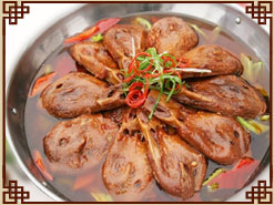 鴨頭集鴨之精華,對(duì)人體有良好的補(bǔ)腦、養(yǎng)血安神之功效!案慑侙嗩^”是由川菜創(chuàng)新出的一種風(fēng)味名吃,由30多種名貴香料制成,充分汲取了中餐炒菜之奧妙,又融入了火鍋的精髓,具有中餐之雅趣,更具火鍋之濃情。干鍋鴨頭鮮嫩異香,久食不厭,回味無(wú)窮,再配上各種時(shí)令爽口涼菜等特色美食,更是令人大快朵頤、留連忘返! 優(yōu)勢(shì)一:干鍋辣鴨頭還可以演化為:干鍋香辣蝦、干鍋豬蹄、干鍋香辣雞等,其制作方法大同小異。先吃鴨頭再涮鍋?zhàn)屇粤送涣耍勚、吃著鮮、麻的過(guò)癮、辣的暖和! 優(yōu)勢(shì)二:干鍋辣鴨頭]選料精細(xì)、考究,提前秘料腌漬入味,油品正宗。它由選料、鹵制、準(zhǔn)備配料、味料和炒制的底料、炒制等工藝完成,其成品特點(diǎn):色澤紅亮、口感軟爛而不失其形、葷素搭配合理、口味豐富(不麻不辣、微麻微辣、中麻中辣、高麻高辣)老少皆宜! 優(yōu)勢(shì)三:干鍋辣鴨頭既可以當(dāng)作一道特色菜品食用,又可以作為一種火鍋鍋底的形式出現(xiàn),客人可以根據(jù)自己的喜好涮制各種葷、素原料,增加就餐氣氛。再佐以多種名貴香料和藥材,其營(yíng)養(yǎng)成分充分溶于湯中,易于被人體吸收。其口味風(fēng)味醇厚、香辣爽口、香而不膩、回味長(zhǎng)久。 |
