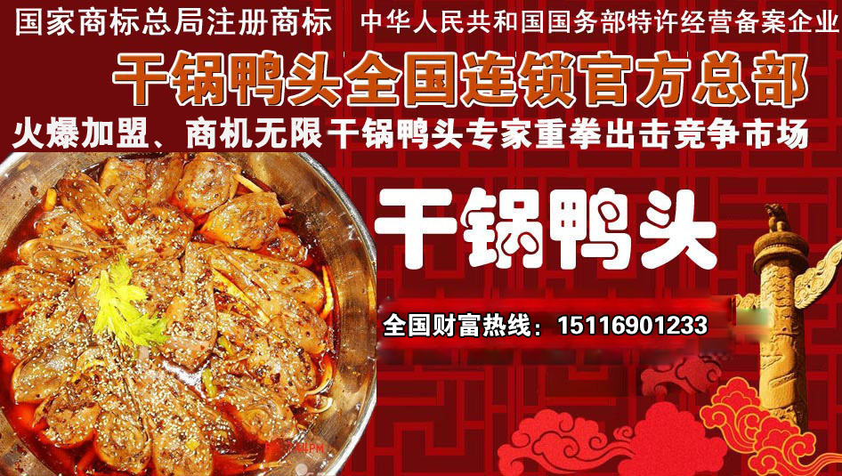 正宗干鍋鴨頭,一品渝香干鍋鴨頭,渝新干鍋鴨頭! 全國(guó)統(tǒng)一加盟熱線:15116901233