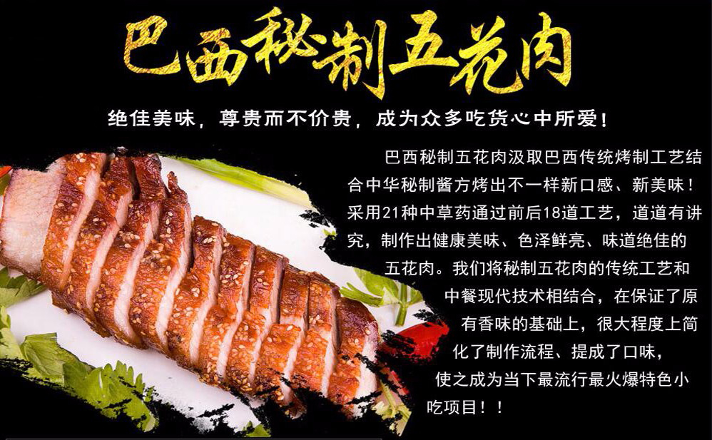 【項(xiàng)目簡(jiǎn)介】巴西秘制五花肉美味實(shí)惠,營(yíng)養(yǎng)健康,大街小巷每天排隊(duì)的景象真真實(shí)實(shí)的證明了這個(gè)項(xiàng)目的火爆。