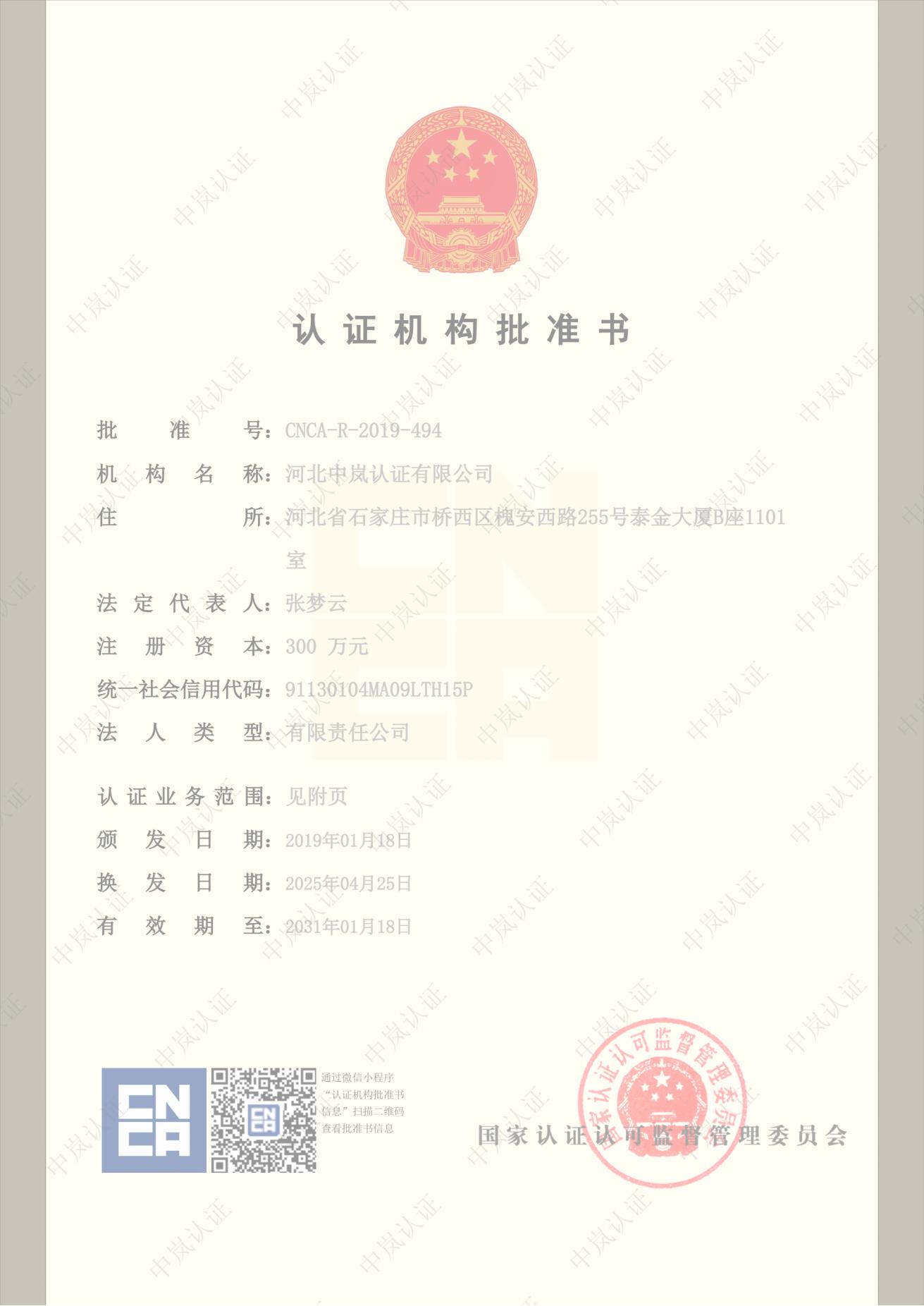 認(rèn)證機(jī)構(gòu)批準(zhǔn)書